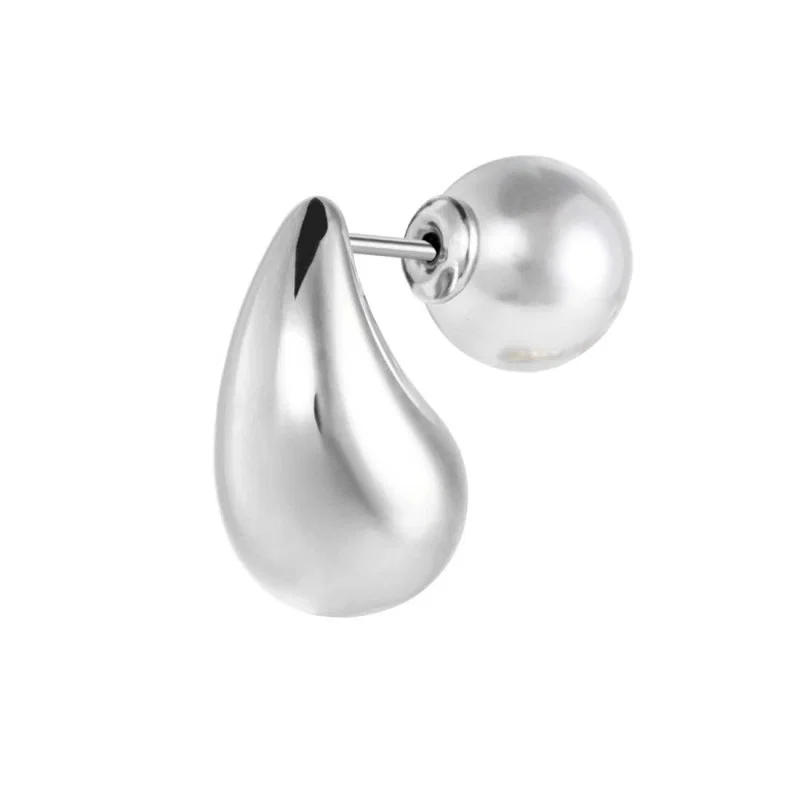 - Materiale: Orecchino in acciaio a lobo a forma di goccia, lunghezza 1,8 cm, con chiusura aggiuntiva perla rivestita a bottone di diametro 10 mm. Marlù logo laserato sul retro. Materiali: acciaio, perla