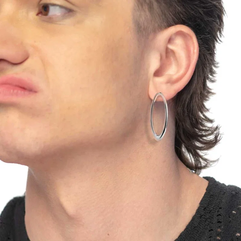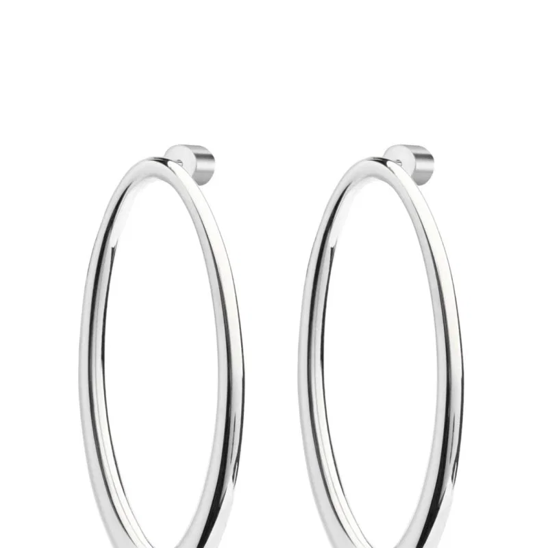 - Materiale: Paio di orecchini in acciaio con anello ovale, lunghezza 4 cm, con aggiunta di chiusura intercambiabile a sfera in acciaio con diametro 8 mm.